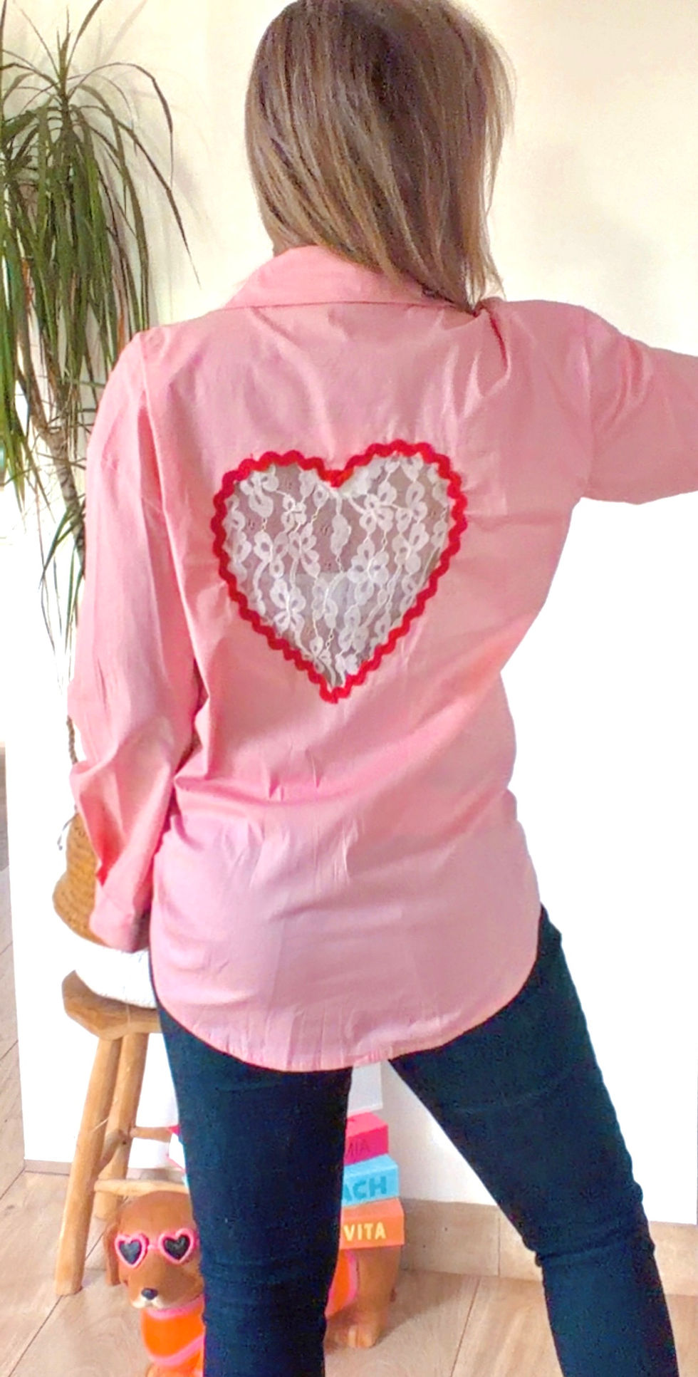 Chemise rose coeur dentelle